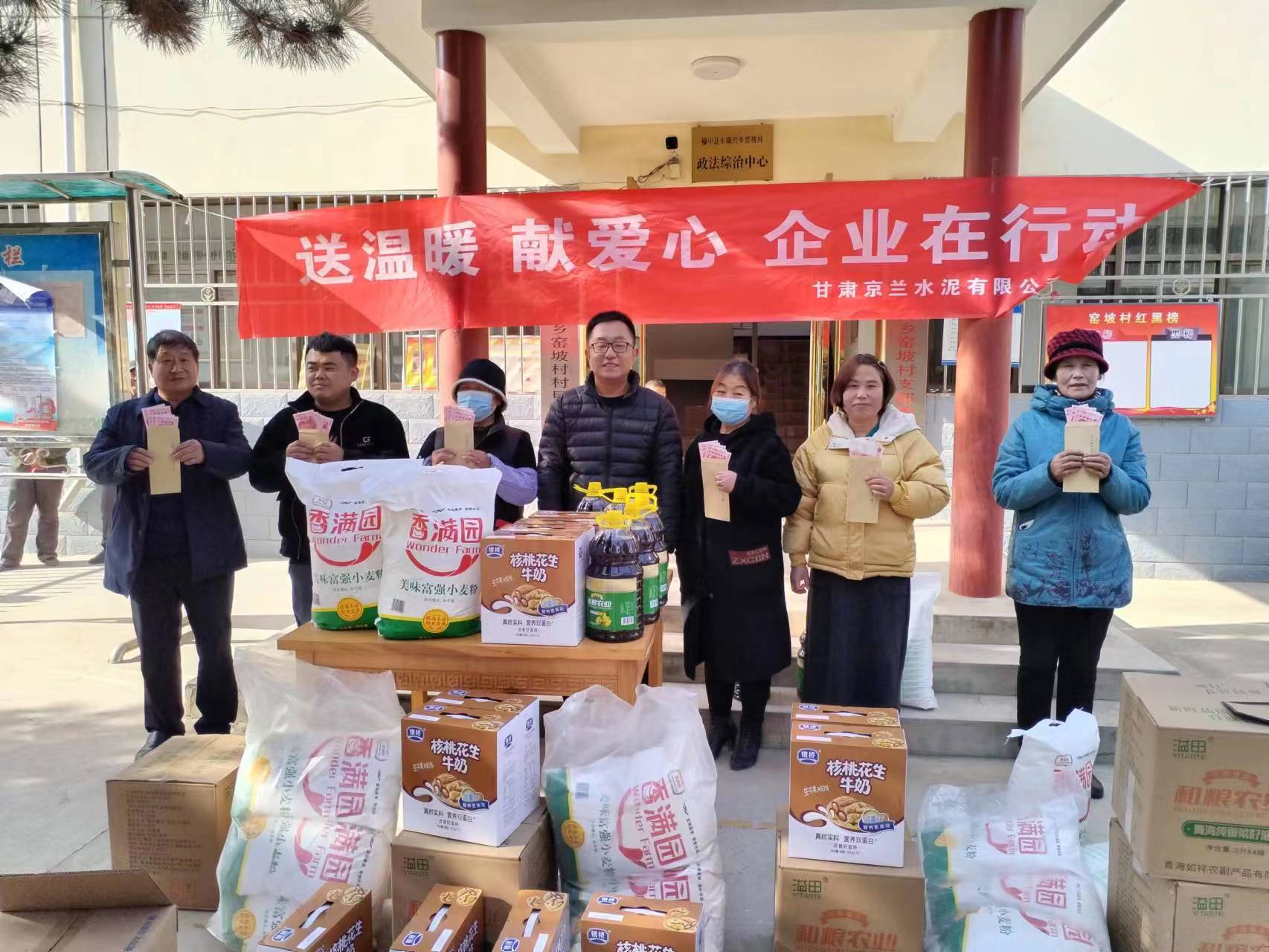 歲寒情更濃,牽掛暖人心。在春節(jié)來(lái)臨之際,甘肅京蘭水泥有限公司黨支部在企業(yè)所在地小康營(yíng)鄉(xiāng)、新?tīng)I(yíng)鎮(zhèn)、高崖鎮(zhèn)開(kāi)展了“送溫暖,獻(xiàn)愛(ài)心,企業(yè)在行動(dòng)”村企聯(lián)建活動(dòng),主要對(duì)涉企鄉(xiāng)鎮(zhèn)的老年人、困難家庭及罹患重病人員進(jìn)行了慰問(wèn)。此次活動(dòng)累計(jì)慰問(wèn)困難群眾122人(戶(hù)),發(fā)放面粉(10kg)122袋、食用油(5kg)122桶、純牛奶122箱、重病人員500元現(xiàn)金/人。